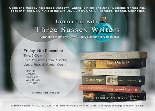 Live in West Sussex? Love Cream Teas? Then why not come along and get in to the Christmas mood as you enjoy a delicious Cream Tea chatting to three local award-winning authors – Jane Rusbridge, Isabel Ashdown and Gabrielle Kimm – in the relaxed ambience of the restaurant. There are deep leather sofas around log burning fire and the decor is coastal-inspired. The family-run garden centre in Birdham also has a Christmas Grotto twinkling with fairylights, hundreds of Christmas decorations to inspire you and gift ideas for all the family. Our books will even be gift-wrapped, by us, for FREE.