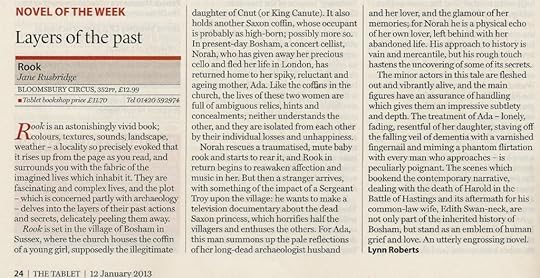 Happy New Year! I was thrilled to hear that ROOK is ‘Novel of the Week’ in The Tablet , the international Catholic news weekly, where artist and picture frame historian Lynn Roberts describes it as an ‘astonishingly vivid’ and ‘an utterly engrossing novel’.