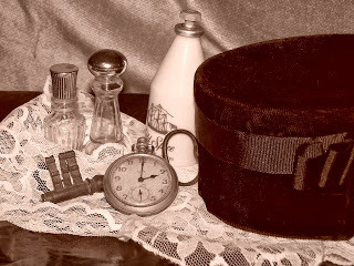 The afternoon shadows deepen as I examine each and every precious item in the trunk. I marvel at the black velvet pillbox hat with grosgrain ribbon Mamaw wore to church back in the 1940’s. I touch the cool metal of Papaw’s pocket watch, the stiff softness of his brown felt hat. The label inside says Adam, Fifth Avenue Quality, long oval, and I wonder how many hats he tried on, how long he stood in the store, before he picked just the right hat, just the right style, to suit him.