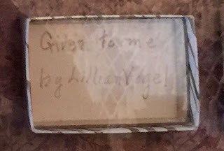 There are two shadow boxes hanging on the wall in one of our guests rooms, and those shadow boxes contain some of my most beloved possessions: my maternal grandmother’s wedding dress and a pair of brooches purchased by my paternal grandmother as gifts for my step-grandma. My step-grandma must have treasured these, because she kept them her whole life (you can see the note she wrote inside the box lid).