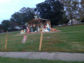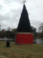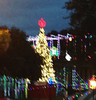 Here is a huge Christmas tree on the river that reminded me of the one I saw in New York last year and a Nativity display along the river (best I could do from a moving car LOL)