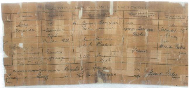 This is my grandfather, Adam Morrison’s birth certificate. He was born on November 5th, and every year skies across the world are set ablaze with fireworks celebrating his birth. Joking...but I always thought it pretty cool that he was born on Guy Fawkes Day.