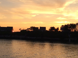 We’re now enjoying our fifteenth summer in the cottage, and I never get over my initial delight. I’m slowly wrestling some flower gardens from the rocky Maine soil, including some plants from my mother’s garden which make me smile whenever they bloom. The cottage faces west, so when the fog isn’t surrounding us, as it has this weekend, we get to enjoy gorgeous Maine sunsets.