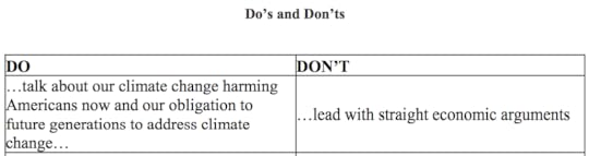 The second messaging problem is that Obama started his address by talking about the economy. Team Obama knows the economic argument is not the one to lead with — the moral argument is. How do I know they know this? Because team Obama finally figured it out two years ago and leaked it to the world around the time of his in his big June 2013 climate speech (see “Moral Majority: Team Obama Finally Embraces The Winning Argument For Climate Action”).