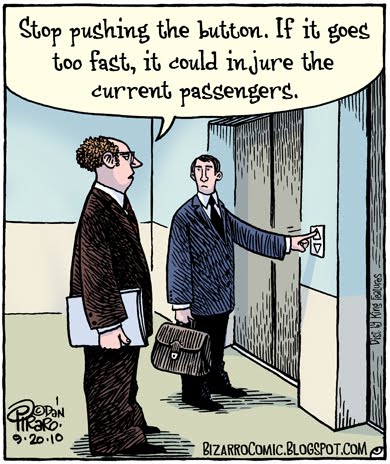 Bizarro is brought to you today by Friendly Mailboxes.Thanks is due today to Brian Levy of somewhere, U.S.A., for sending me an email last summer suggesting I do a cartoon about that thing where people push the