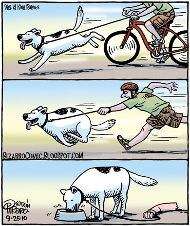 Bizarro is brought to you today by Jailer's School.I got some interesting mail on the dog cartoon. A handful of people wrote to me and said how much they liked this cartoon, two of whom were professional cartoonists. This surprised me a bit, I didn't think it was all that clever, just sort of a funny visual. One site, The Comics Curmudgeon, one of my favorite daily reads and one that makes its bread by skewering cartoons, posted it just because they liked it. I secretly always wanted to be on that site but not for the eviscerating reasons that cartoons usually end up there. It was a dream come true.