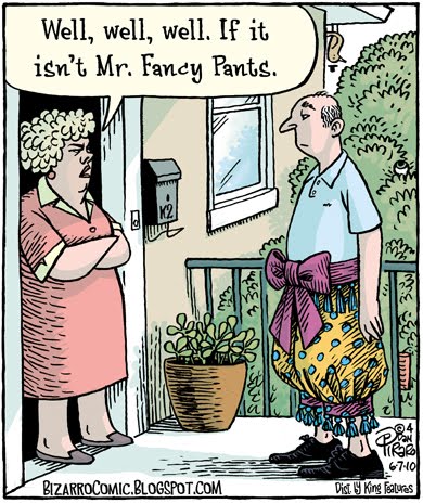 Here are two cartoons again, since I'm still playing catchup. The first one means nothing, I just wanted to play with the term "fancy pants." Lately I've been playing with comics that are just silly, not particularly clever or witty. It's fun sometimes.