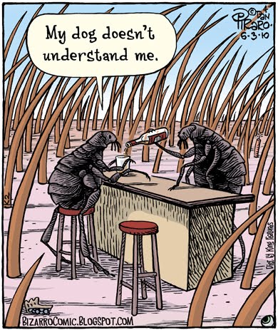 Bizarro is brought to you today by Seeing Eye Dogs.Here's an alternate take on the "my wife doesn't understand me" cartoon cliche. I like using standard cartoon setups in new ways, not sure why, just do.