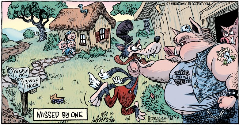 Bizarro is brought to you today by Auto Obesity.My life is a big gooey slithering wombat of stress right now. I'm working on a couple of big projects outside of Bizarro (details later, maybe), CHNW and I are preparing to sell our place in Brooklyn and move away from NYC (a feat of idiotic proportions considering the clutter of our house is rivaled only by the seething demonic chaos of all the crap we have stored in the basement), and my finances and psyche are in disarray. Those last two thin...