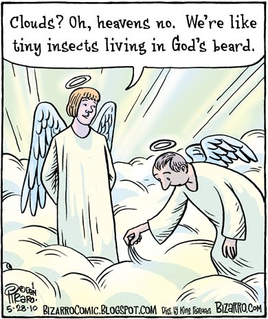 Bizarro is brought to you today by The Heavens.I was musing one day about people's various ideas of "heaven." The idea of an afterlife of any kind is not one that I embrace at all, I think it is no more likely than a pre-life, of which there was most certainly none to my knowledge. Sorry if I offended any reincarnation believers, it just isn't something I can accept. If it works for you, go for it.