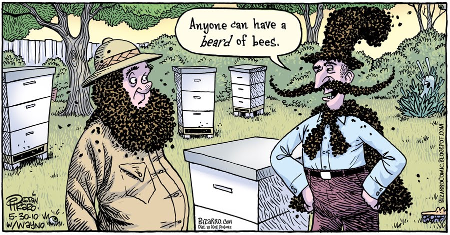 I've always been fascinated by any attempt to build a beard out of something other than facial hair. Who isn't, am I right? Waffle beards, wax beards, carpet goatees, sideburns of mango skins, they're all amazing in their own right. But the top of the heap, as far as replacement facial hair substances go, is live, stinging insects.