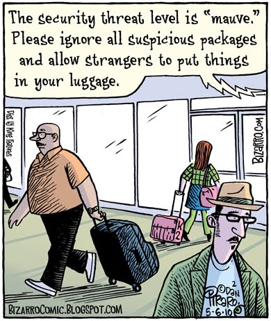 Bizarro is brought to you today by Hair at First Sight.This cartoon was inspired by the laughable system of security that we have adopted at U.S. airports since 9/11. I've long thought that it was designed primarily to create an "appearance" of safety so as to calm travelers and a couple of airline pilots I've spoken to in recent years confirmed that. A couple of weeks ago, while a small bottle of distilled water that I was carrying to keep my cigars humidified was confiscated by security, th...