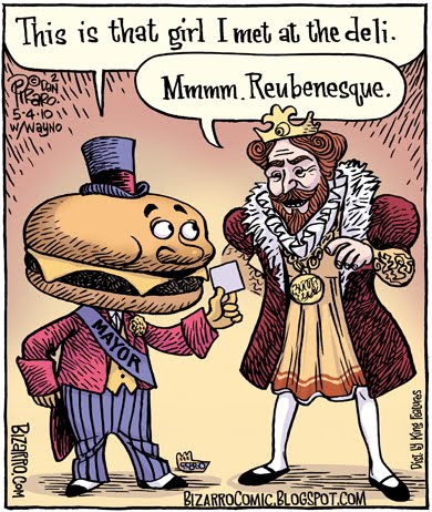 Bizarro is brought to you by my long absence. Thanks for your patience and all of the notes and comments expressing a wish for my return to daily blogging. I've been away from home for three weeks, a rarity for me, partly on holiday in Hawaii and partly in Austin, Texas for my daughter's wedding. It was a terrific trip all around.