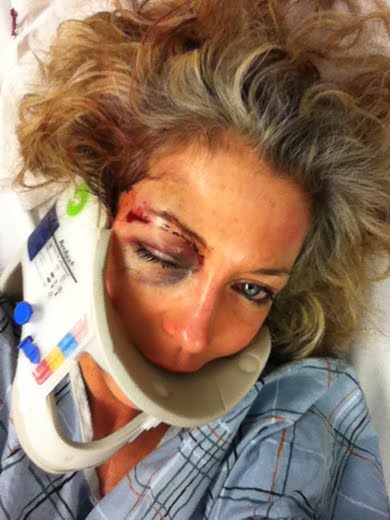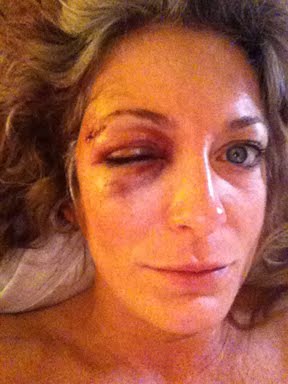 They further admonished her not to get the wound wet for 24 hours, which is a real drag because she has quite a lot of dried blood in her hair. I'm sure it will be uncomfortable for her to sleep with dried blood in her hair and I'm not downplaying that at all, but what about me? I have to sleep with a woman with a face like Rocky Balboa and dried blood in her hair. That's not something I thought I'd ever say.