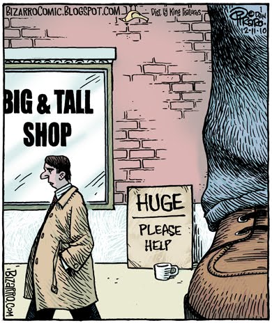 This next cartoon was drawn from personal experience. I am inordinately tall – 7' 5" – and have always had a terrible time finding clothes that fit in those Big and Tall men's shops. It could be that even at that height I am still too far out of the norm to be catered to by mass production. Or, it could be that I still have a touch of dyslexia from time to time, I am actually 5' 7", and I have no business in a Big and Tall shop in the first place. That would explain why the clothes in those shops are so baggy, come to think of it.I'll be posting again tomorrow, but I want to be sure to remind you to check in next week when I'll be posting my holiday family newsletter; a complete rundown of all the precious and adorable moments of my family for the past 12 months. I don't send out cards or letters of any kind this time of year, so this is the only place to get it.