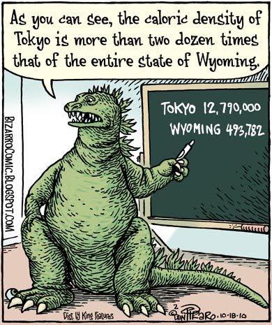 caloric density of Tokyo is more than 3,000 or 250 dozen times that of Wyoming,
