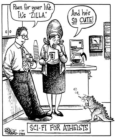 Bizarro is brought to you today by No One Zilla.Today is a special presentation of Unusual Mail From Unusual Readers. The day after the Godzilla cartoon at left ran in the paper, I was copied on the following email, sent to the Tacoma News Tribune editor. The author allowed that I may post this letter here as long as I do not edit it in any way, including his "job title."