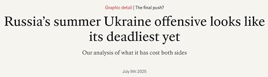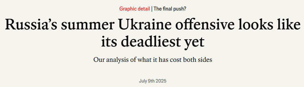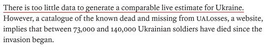 This was immediately backed up by new articles, like the following from the Economist, which likewise claims Russia is experiencing its deadliest year on the front yet, with 30,000+ deaths just in the past couple months alone: