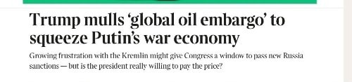Lastly, in anticipation of Trump’s supposed “big announcement” on Monday, several MSM publications are reporting that Trump is preparing to launch an unprecedented global oil embargo against Russia: