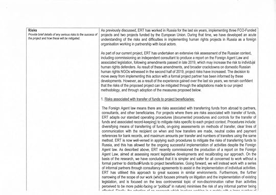 The leaked documents make clear that the British were aware that their activities were illegal under Moscow’s Foreign Agent law. A funding application for Equal Rights Trust, a Global Britain Fund recipient charged with lawfare operations referred to cryptically as “targeted strategic litigation” explicitly describes a British government-funded effort to evade the new law. “As part of our current project” being financed by the UK Foreign Office, ERT wrote that it “has undertaken an extensive risk assessment of the Russian context, including commissioning an independent consultant to produce a report on the Foreign Agent Law.” As a result, “ERT is now well-versed” in various “procedures to mitigate the risks of transferring funds to Russia,” which “allowed for the ongoing successful implementation of activities despite the Foreign Agent law.”