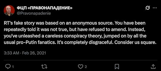 Meduza’s then-investigative editor, Alexey Kovalev, appeared to acknowledge the bogus story was revenge for articles exposing Britain’s clandestine support of both Mediazona and Kovalev’s employer, Meduza. In a 2021 tweet, Kovalev accused the author of this article of having “unleashed a careless conspiracy theory,” insisting that the leaked documents exposing those ties were “fake.” In closing, he sneered: “consider us square.”