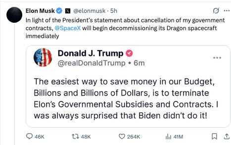 So there is a legitimate reason that the government has to use the Defense Production Act to take over SpaceX, since Musk is threatening to sabotage vital interests over a political spat. Normally, I’d support Bannon’s argument, and also call for an antitrust investigation and action, as that should have happened long ago. But this is the Trump era, and there’s a reason that didn’t happen