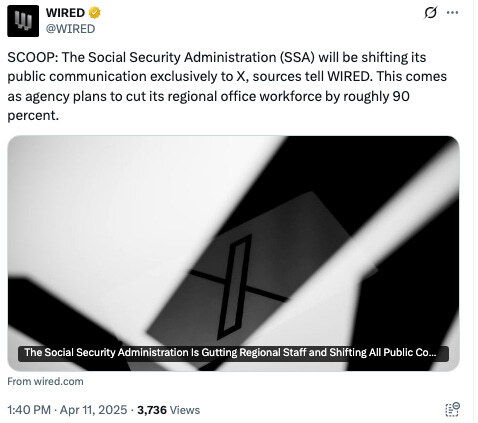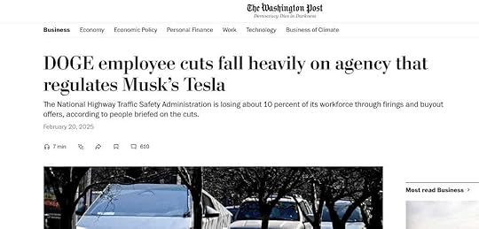 I’m not making a corruption argument, though obviously the conflicts of interest here are insane. I’m making a slightly different point. For the last three years, and then increasingly since Trump took office, every Republican official with less than a billion dollar net worth has been bending over backwards to be as obsequious as possible to Musk. When told to jump they ask how high, they self-righteously attack and ferret out anyone who had anything to do with anything that might slightly annoy Musk. It’s little stuff, like this, which I’m guessing Musk didn’t ask for but some random Trump staffer thought might get him a promotion or a positive word from the boss.