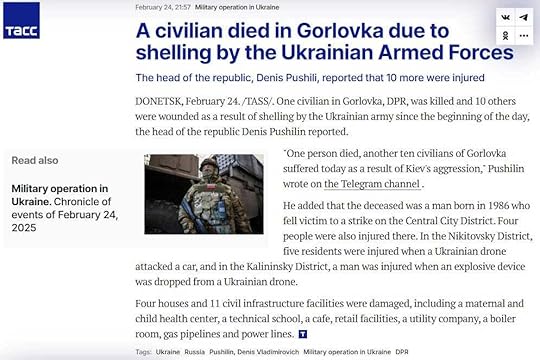 (You might be wondering how it’s possible, after three years of special military operations to “protect the people of Donbass”, that a town located less than 60 km from Donetsk is still being shelled by the Ukrainian military. You and me both, friend.)