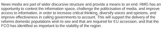 That the Foreign Office uses BBCMA – and the BBC by extension – for nakedly political interference overseas is spelled out in leaked documents detailing yet another covert British safari in the Balkans. While ostensibly concerned with “supporting greater media independence” in the region, BBCMA acknowledged that its news reporting was “a means to an end.” The ultimate objective, according to the internal documents, was holding “governments and powerful entities to account” should they fail to act as required by London.