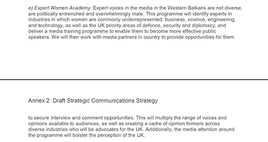 BBCMA also sought to recruit and cultivate a legion of “opinion formers” across diverse fields, particularly in London’s “priority areas of defence, security and diplomacy… who will be advocates for the UK” in the West Balkans. Associated activity included training “young people to become content producers” and “news generators,” via a “citizen content factory.” Media training programs would enable BBCMA assets “to become more effective public speakers,” and the organization would “then work with media partners in-country to provide opportunities for them.”