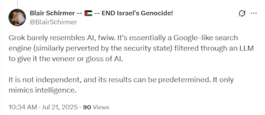 Increasingly on X, people are relying on Elon Musk’s “Grok” algorithm for verification of information in posts. However, while to some this may seem a useful tool, what it is doing is reinforcing Western and allied regimes’ positions and whitewashing their crimes.