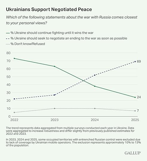 On August 7th, US polling giant Gallup published the remarkable results of a survey of Ukrainians. Public support for Kiev “fighting until victory” has plummeted to a record low “across all segments” of the population, “regardless of region or demographic group.” In a “nearly complete reversal from public opinion in 2022,” 69% of citizens “favor a negotiated end to the war as soon as possible.” Just 24% wish to keep fighting. However, vanishingly few believe the proxy war will end anytime soon.