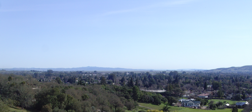 Sunny Sonoma Friday. Mostly clear and 64 degrees F. Had to get away from Die By Wire. And from Wine Industry Insight. But too much work to do to take a long hike. So I headed up the hill north of town. Boston Song and Biblical story of Lot say "Don't look back. But I did. And this is what I saw: