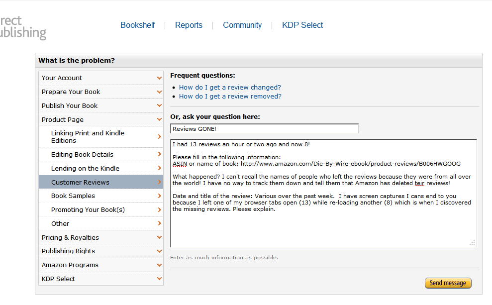 But I'm still working to get my bestseller rank back where it was before the reviews got misplaced.