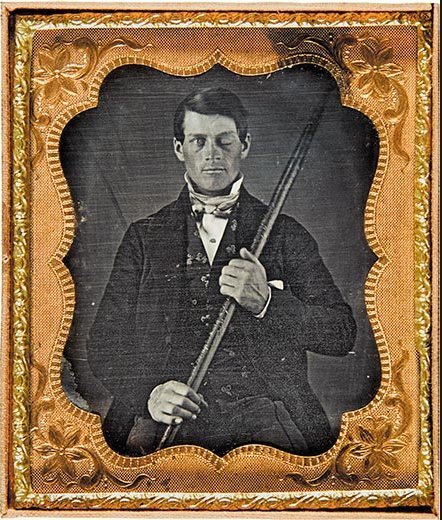 "A twenty-five-year-old railroad construction foreman transformed by an industrial accident in 1848. Gage's employers, coworkers, friends, and family unanimously praised him as an intelligent, responsible, honest, polite, disciplined—moral—man. Then late one hot summer afternoon in Vermont, Gage made a near-fatal mistake using a four-foot steel pike to tamp explosives into a drilled rock hale. The powder exploded, driving the steel pike into his left cheek, through his eye socket, and the frontal lobes before shooting out the top of his head.