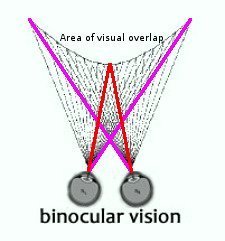 We are creatures with eyes set in the front of our heads, giving us good binocular vision and therefore excellent depth perception in the area where both our eyes perceive the same image. The single image is seen slightly differently by each eye (close one eye and then the other and watch computer screen move back and forth!) The brain then puts the two images together so we see one thing. The brain also triangulates and determines distance.
