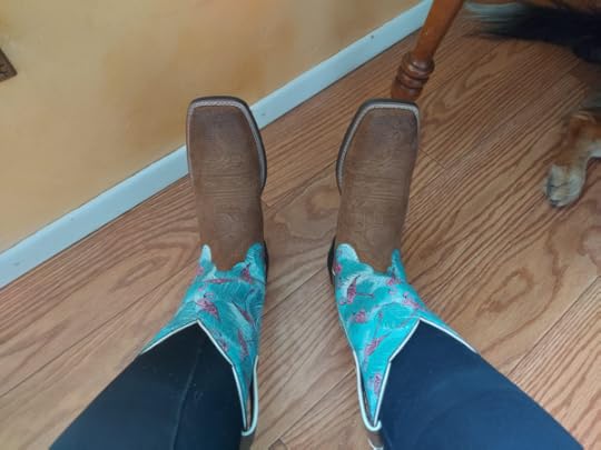 But back to the upcoming show. I bought some new boots because my old pairs all have holes. And I found Ariats with flamingos. And they were on sale. And since I have flamingo shirts, I bought them! I might have to tuck my pants into my boots so the birds show! Or wear leggings! Or maybe I will keep the flamingos safely out of sight under my pants, knowing in my heart that the tropics are under there! I mean this whole showing thing should be fun!
