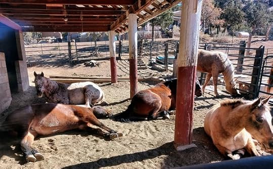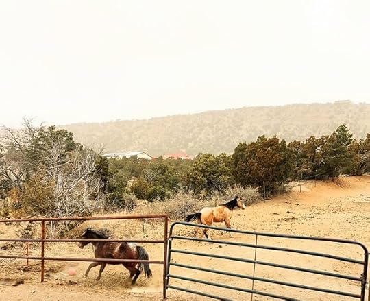 Rdige, but no mountains. The horses are generally unfazed by the wind because it’s windy a lot but Gette (bay) and Colleen’s Stella (buckskin) decided to take a few laps. Stella is a fairly reserved horse so I love to see her let loose a little!