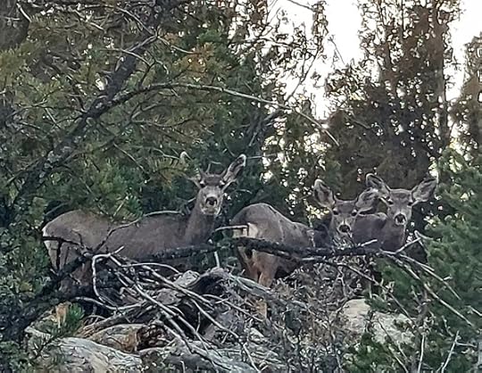 In other news, I FINALLY caught some white-tailed deer on my game cam. There were some does at night, too, but this buck was a nicer shot. And when I was collecting the camera, I saw four does right up the slope and got a shot of them with my phone.