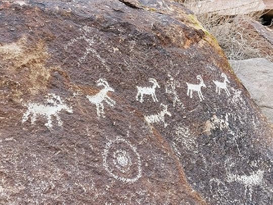 The rain quit in Nevada. We hiked to some pictographs and then drove over Christmas Tree Pass, a dirt road that did not test Fiona’s 4WD capabilities and didn’t have any Christmas trees, either, except one little metal Christmas tree yard ornament on a stick! It was still fun and scenic!