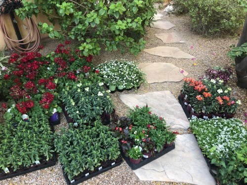 At this time every year in Arizona, we pull out the “summer flowers,” the annuals that we plant in May. We replace them with “winter flowers.” Usually red geraniums are featured, as they are this year. In the last few years we have much fewer choices than we used to have. This year, we had even less choice–and the red geraniums don’t look very good. I hope they perk up once planted. Today is the day we plant!