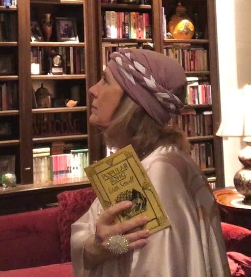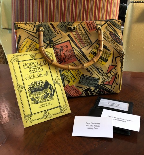 I wanted another poet, but it needed to be somebody who lived to be as old as me, so Sylvia Plath was out. A friend suggested Edith Sitwell because she dressed eccentrically in turbans and caftans. She was a well-known British poet active in the 1910s to 1960s. She was an aristocrat and her two brothers were also poets. So I put together a costume as Dame Edith Sitwell, and the gardener dressed as Sir Osbert Sitwell. https://en.wikipedia.org/wiki/Edith_Sitwell