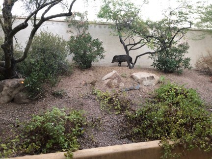 This past week we had two new animals show up in our yard. The first was an adolescent javelina. These are not pigs, but peccaries. Because they are very destructive to flowers and cacti, we eventually had to get permission to fence them off our property. But now this little one showed up alone. They travel in herds, called squadrons, and the babies are always twins. I think this one became separated from his people after the @#&*s had to have their fireworks.