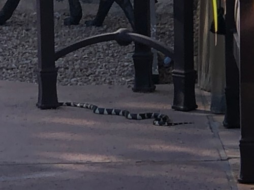 Then we were visited by the king snake two days in a row. The first time the snake was climbing a wall. The next day he was near the pool. We love king snakes because they keep rattlesnakes away!