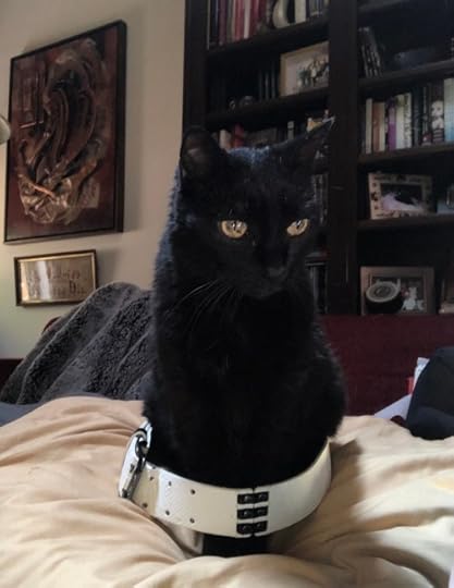 My girl Kana is the Box Queen. She is the one of my five cats who finds a box or bag the minute it enters the house. The other day she went one better. I set a buckled belt I am using for an exercise on the couch. When I turned back to it she had climbed in it.