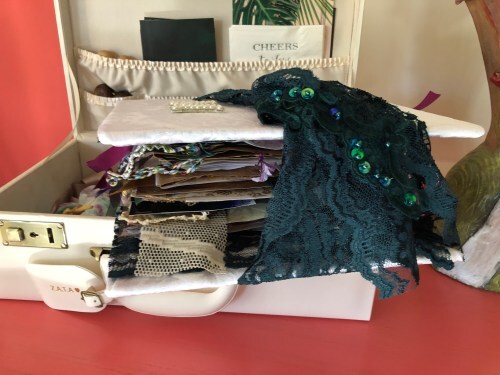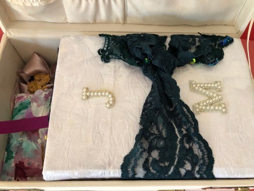 See inside on the left? That’s a little clutch I made out of plastic grocery bags to store the cassettes of their wedding music.