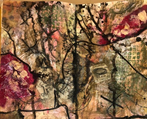 I’m taking a year-long art class with weekly lessons. This time I learned new ways to create depth in an abstract. I did this one in my journal.