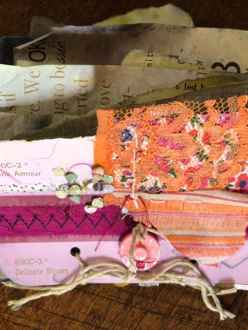 I thought I would share with you about the practice of art journaling. But first, here is a little water journal I made about three weeks ago. It’s made up of scraps of junk that are colored on a bit and then soaked in water. I love this little thing and keep flipping through it.