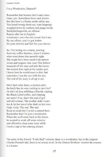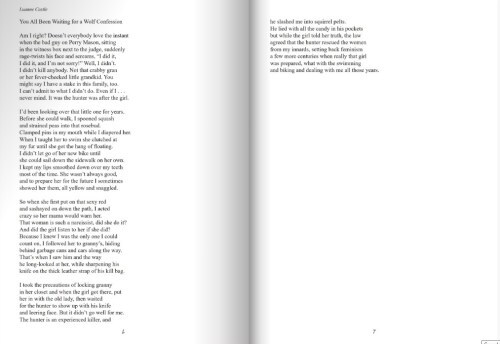 Here is the link to “You All Been Waiting for a Wolf Confession” on page 6 and “I’m a Woodcutter, Dammit” on page 39. Here is the link so you can check out the whole issue which is chockful of good writing: