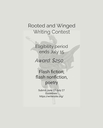 This is a reminder that the eligibility period for the Rooted and Winged Writing Contest ends on July 15, which is a week from Friday. However, the deadline for submissions is not until July 27! Read the guidelines here: WRITING CONTEST GUIDELINES